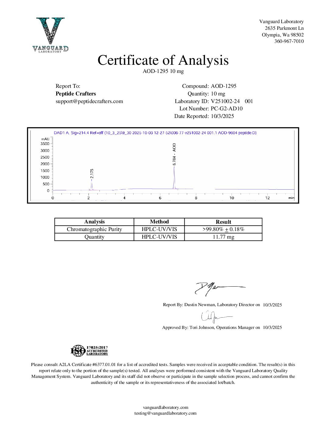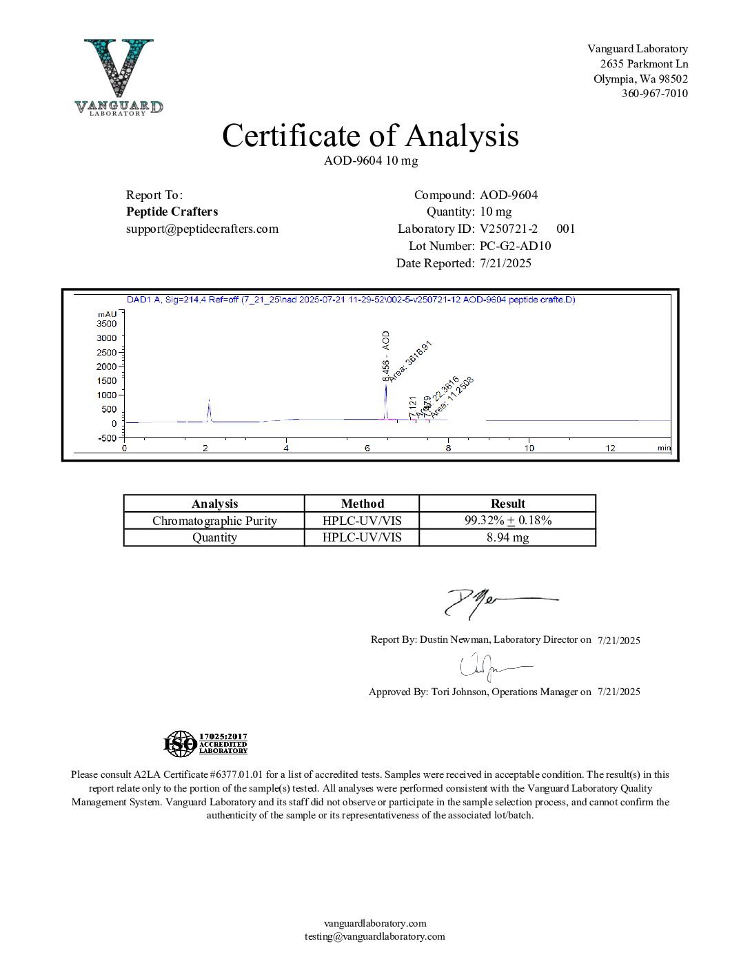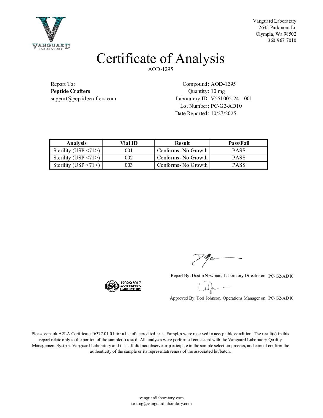 AOD-9604 (10MG) – NEW CLEAR NON-GEL FORMULA | MANNITOL-FREE FOR SALE