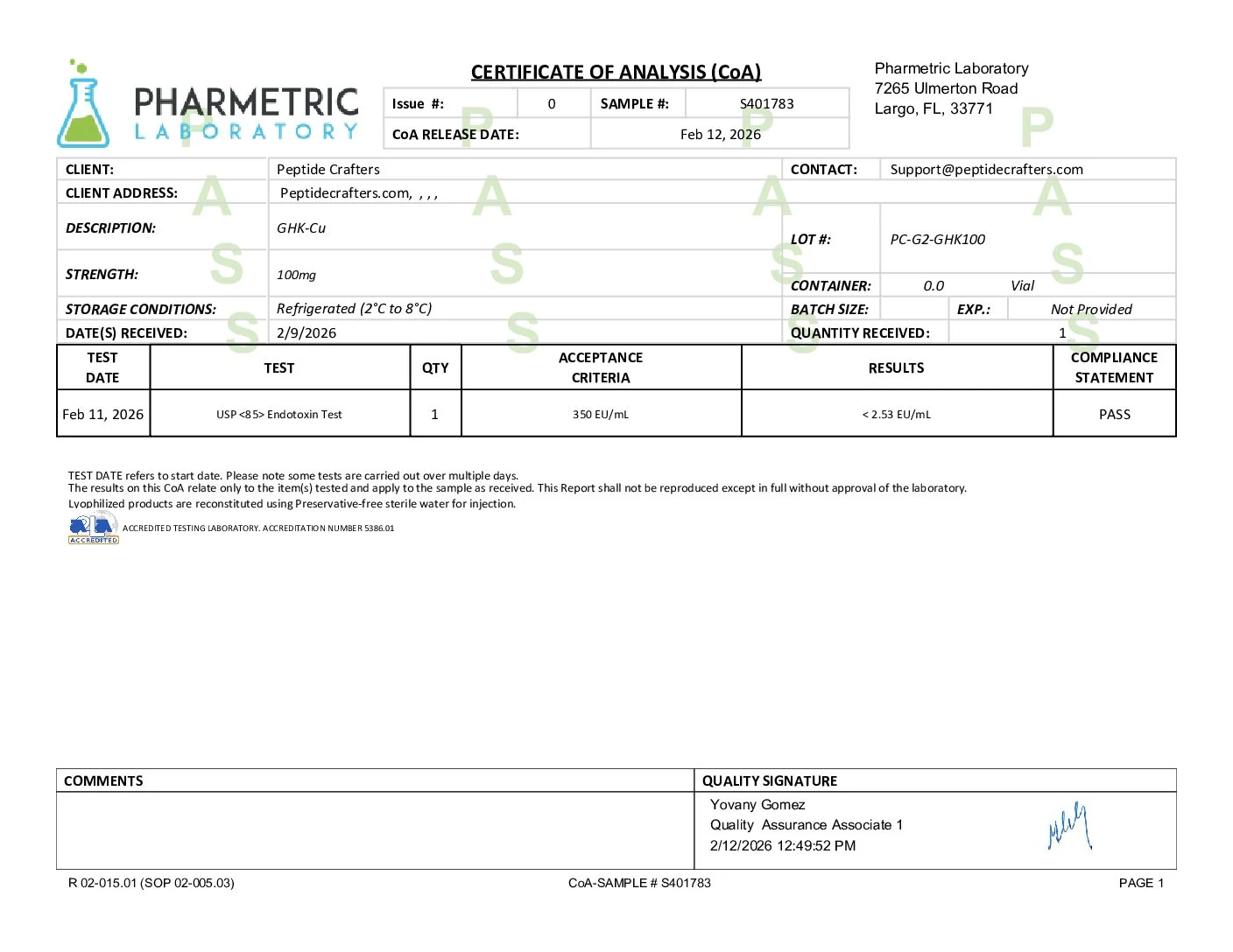 Each batch of GHK-Cu (100mg) is manufactured under strict laboratory conditions to ensure the highest standards of purity and stability. Advanced analytical techniques, including high-performance liquid chromatography (HPLC), are used to verify peptide composition and quality. The lyophilized 8mL vial format protects the peptide from degradation, ensuring long-term usability when stored in a cool, dry environment.