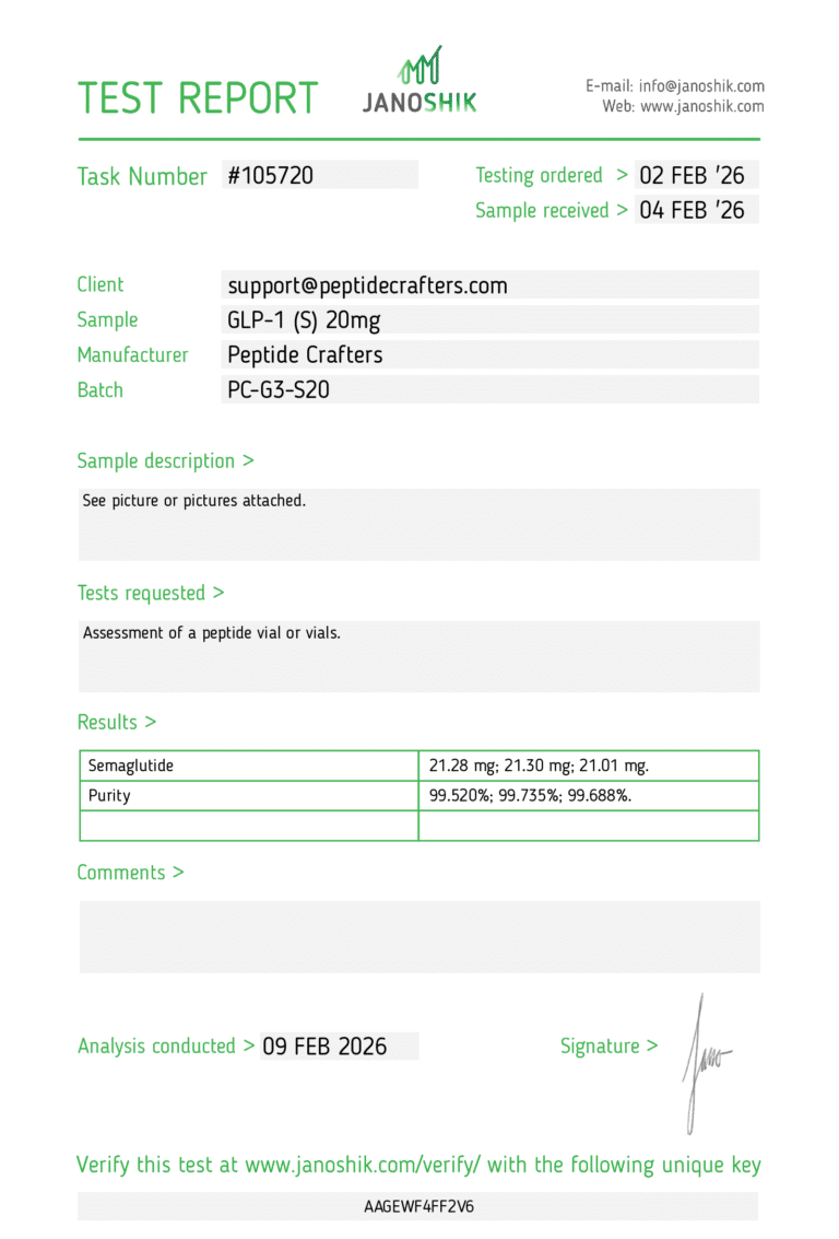Each batch of GLP-1 (S) 20mg is manufactured under strict laboratory standards to ensure purity, stability, and experimental reliability. Advanced analytical techniques, including high-performance liquid chromatography (HPLC), are used to verify peptide composition and quality. The lyophilized format provides long-term stability, ensuring the peptide maintains its structural integrity when stored in a cool, dry environment.