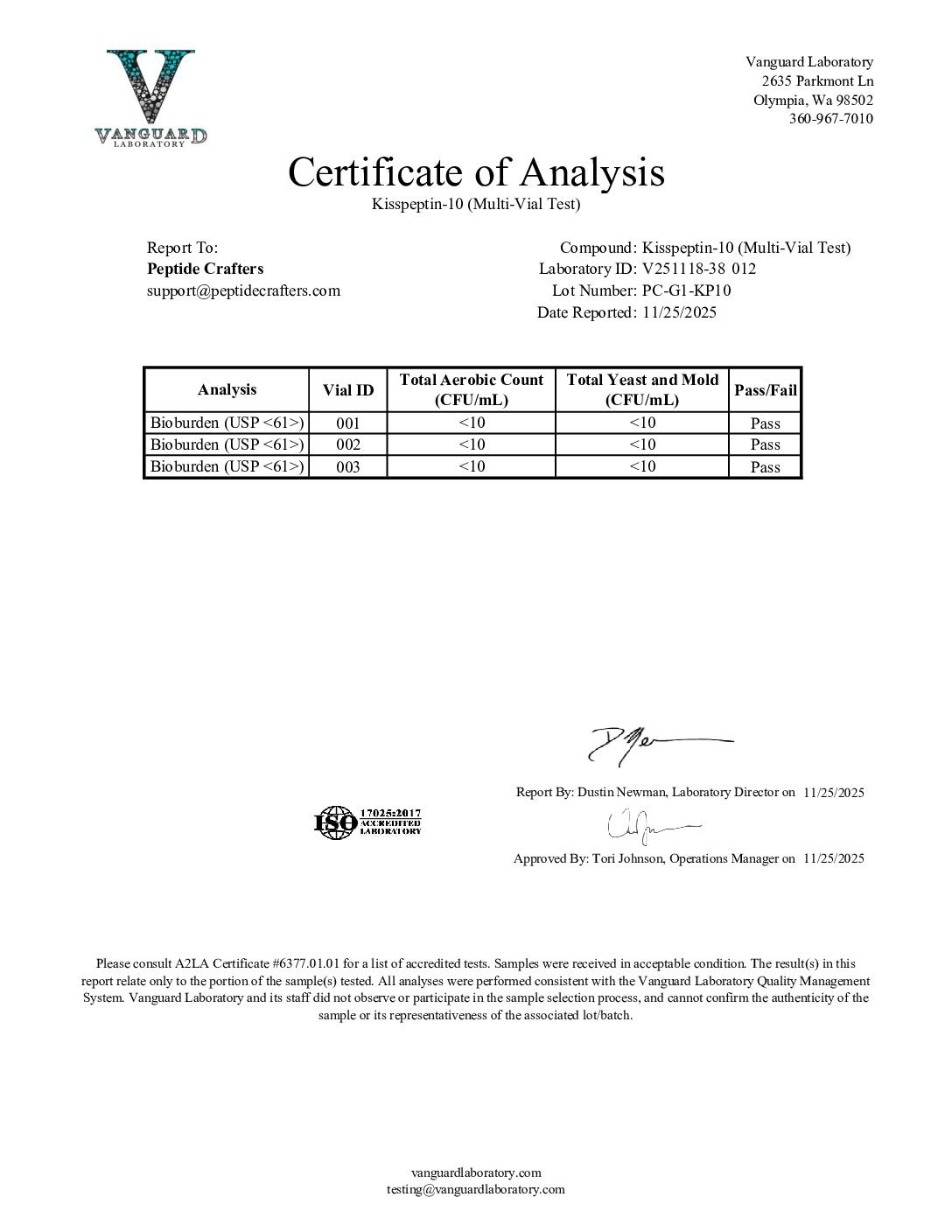 Each vial of Kisspeptin-10 (5mg) is manufactured under strict quality control standards to ensure high purity, stability, and reproducibility. Supplied in lyophilized powder form, it allows for convenient storage, handling, and reliable experimental results. Proper laboratory storage—protected from heat, light, and moisture—is essential to maintain peptide integrity and research efficacy.