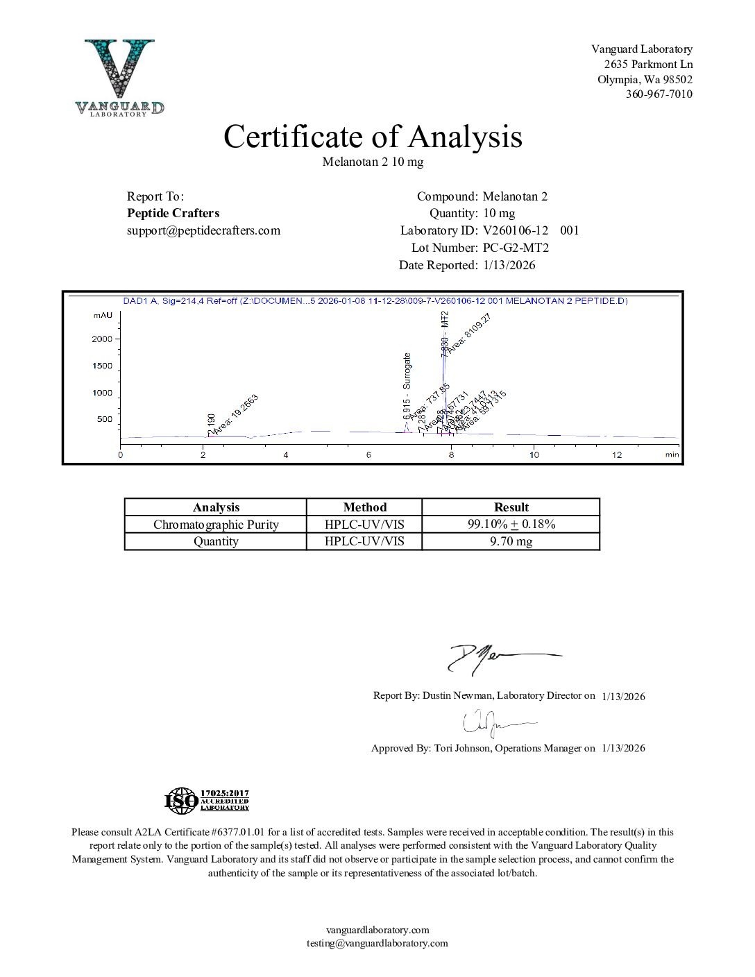 Each vial of Melanotan 2 (10mg) is manufactured under strict quality control standards to ensure high purity, reproducibility, and long-term stability. Supplied in lyophilized form, it allows for convenient storage and reliable research results when handled under proper laboratory conditions. Protection from heat, light, and moisture is essential to maintain peptide integrity and experimental effectiveness.