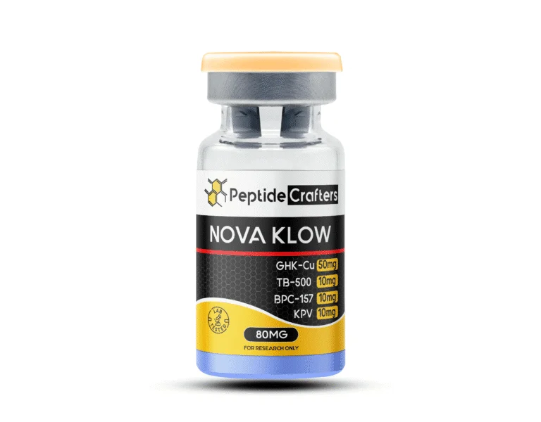The NOVA KLOW 80mg Large 8mL Vial provides a comprehensive peptide platform for research in wound healing, tissue regeneration, anti-aging, and inflammatory modulation. Its multi-peptide formulation allows researchers to investigate synergistic effects on cellular repair, tissue remodeling, and systemic regenerative responses.